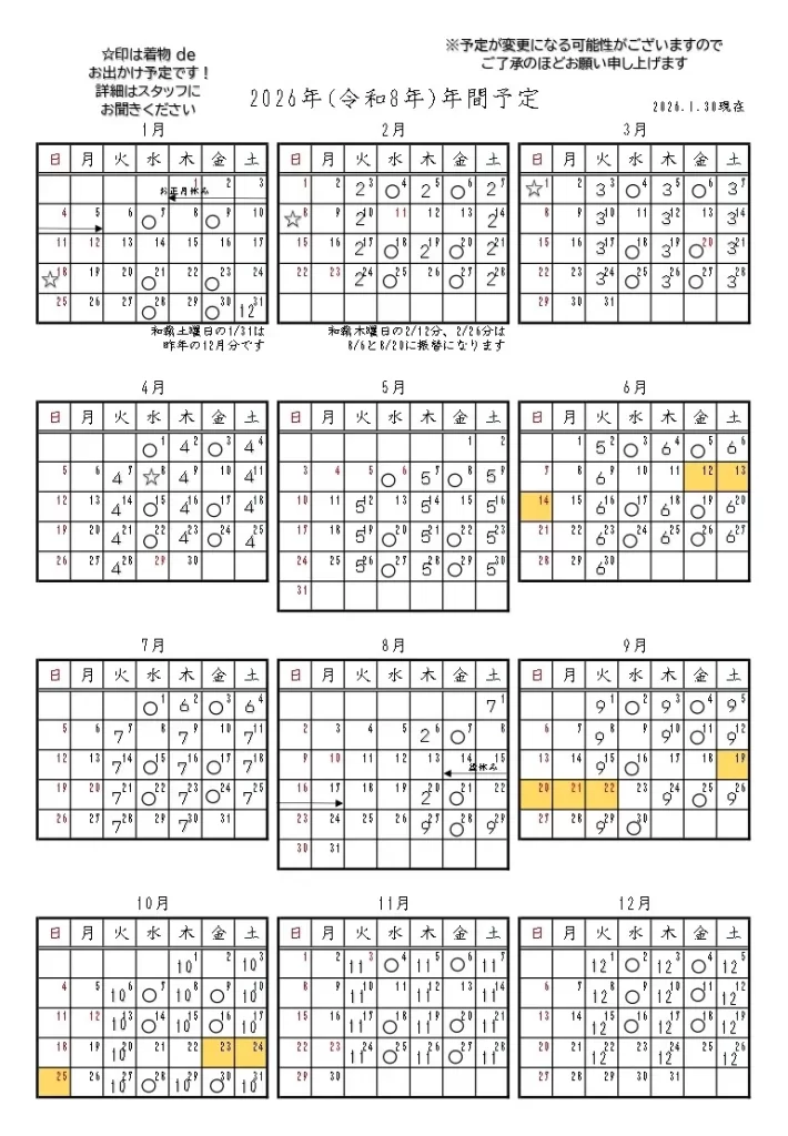 教室年間予定表